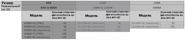 в двух типоразмерах: корпуса 250 A и 630 A. |